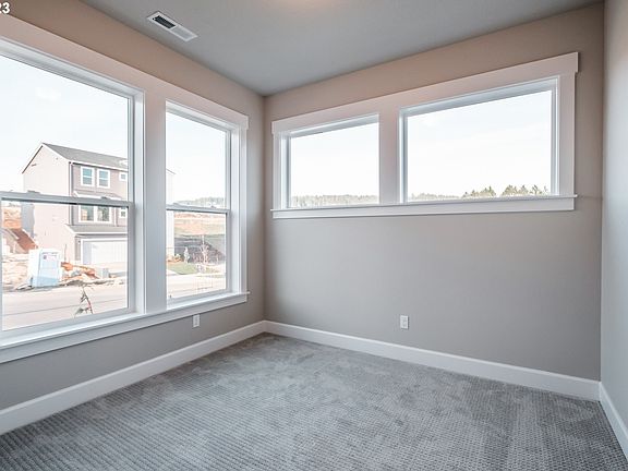 Primary Bedroom on Main, two bedrooms up and nice large Gameroom in Daylight basement. Backs to trees, privacy to back and side. Main floor living with Laundry, Primary Room and Study. Quartz, Stainless Apps,Decks overlooking green space, Energy Efficient homes with an Energy Guarantee from Earth Advantage. Privacy abound- have to experience the deck with Sunrise looks to the East.