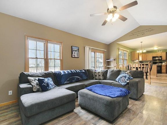 Welcome to Oak Crest! Don't miss out on this beautiful 4 bedroom home in a desired subdivision! Large family room with new flooring and vaulted ceilings perfect for warming up with the gas fireplace. Separate living front room perfect for watching TV or play room. Features an eat-in kitchen as well as dedicated formal dining room with new flooring. Open floor plan flows from family room to the updated kitchen with all appliances included. Half bath on main level perfect for guests. Laundry mudroom on main level as you enter the home from the two car attached garage. Upstairs you will find all new carpet throughout. Spacious master bedroom with walk-in closet and ensuite bathroom with double sink vanity and stand-up shower. Down the hall are 3 guest bedrooms as well as guest full bathroom. Finished basement with new flooring and plenty of storage. Colts wall can easily be converted to Bears wall. Plenty of room to play and entertain in the large, flat, fully fenced in backyard as well as grill out on the large back deck. Don't wait on this one, schedule your showing today!