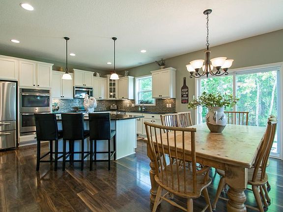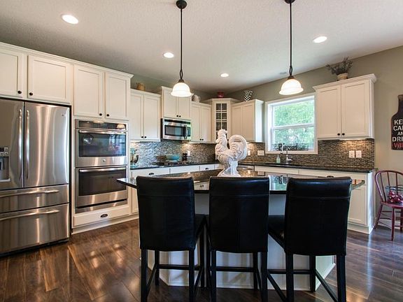 Beautiful Two Story Home in Martin Farms. Enjoy the Community Swimming pool, BB court, Soccer field, Trails, Park & Picnic area. This home features an open floor plan w/main floor office. Spacious kitchen w/granite counters, Mosaic backsplash, Large Island w/seating, LR w/gas FP, Ensuite w/walk-in closet, sep tub & shower, LL finished w/custom built cabinetry & wet bar, 3/4 bath & add'l bedroom & family room, all on a semi-private wooded lot.