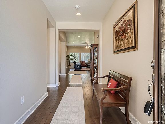 Welcome Home! Please stop by to see this immaculate ranch style, 2 bedroom, 3 bath home located in wonderful Skyestone, one of the premier 55+ communities in the North Metro Denver area. The open floor plan is ideal for entertaining your family and friends and features a great room with a cozy fireplace, breakfast nook and gourmet kitchen. The kitchen features stunning dark cappuccino cabinets accented by granite countertops. Additional Cabinetry has been extended into the breakfast nook area adding so much storage!! Stainless-steel appliances including gas cooktop, double ovens, microwave and refrigerator. The huge center island boasts a granite composite sink and seating for 6. Your Butler Pantry offers even more storage along with a walk in food pantry. You can expand your party to the outdoor covered patio. Gas line has been installed for your grill. This home sides to a greeenbelt and walking path. The lovely primary suite is a perfect retreat with a spacious 5 piece master bath and added shelving in the Walk-In Closet. Special features throughout including the beautiful hardwood floors, Scottish Stained glass front door and Wrought Iron Railings. 2nd Bedroom offers an En-Suite full bath for your guests! The Laundry Room also has additional cabinets and utility sink. Mudroom contains bench seating and plenty of room to wipe off those muddy paws:) Plus, a full unfinished basement is ready for you to make your own. Radon System is installed. Exterior of home painted in 2020. Skyestone is a vibrant neighborhood that offers an array of programs, events and groups to join. There are miles and miles of walking and biking trails. Hwy 36 is just around the corner!