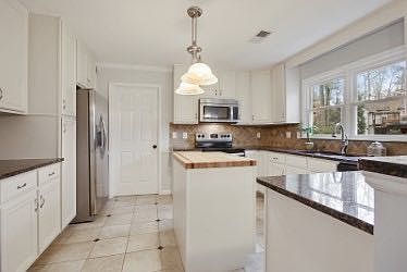 - Kitchen Features: Eat-in Kitchen, View to Family Room, Stone Counters, Breakfast Room, Cabinets White