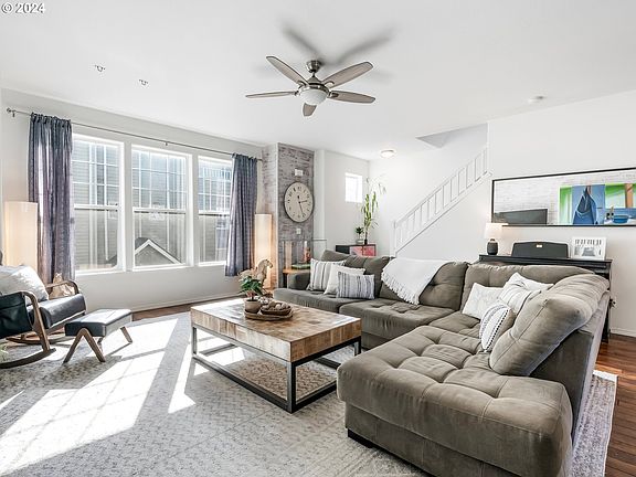 Fall in love with this beautiful, light and bright townhome. Step inside to discover the wood floors, high ceilings and open concept floor plan. The updated kitchen has ample counter space, bar seating and a pantry. Seamless flow from the kitchen to great room is an entertainer's dream, with lots of space to gather. Large windows provide an abundance of natural light. The primary bedroom features a walk-in closet and private bathroom. Laundry upstairs. Lots of storage spaces throughout the home in addition to an oversized 2 car garage. Private backyard with patio, turf and new fence. Fantastic location in the heart of downtown Beaverton, only blocks to library, MAX, farmers market, schools, shops, restaurants and coffee. Walk Score 95 and Bike Score 84.