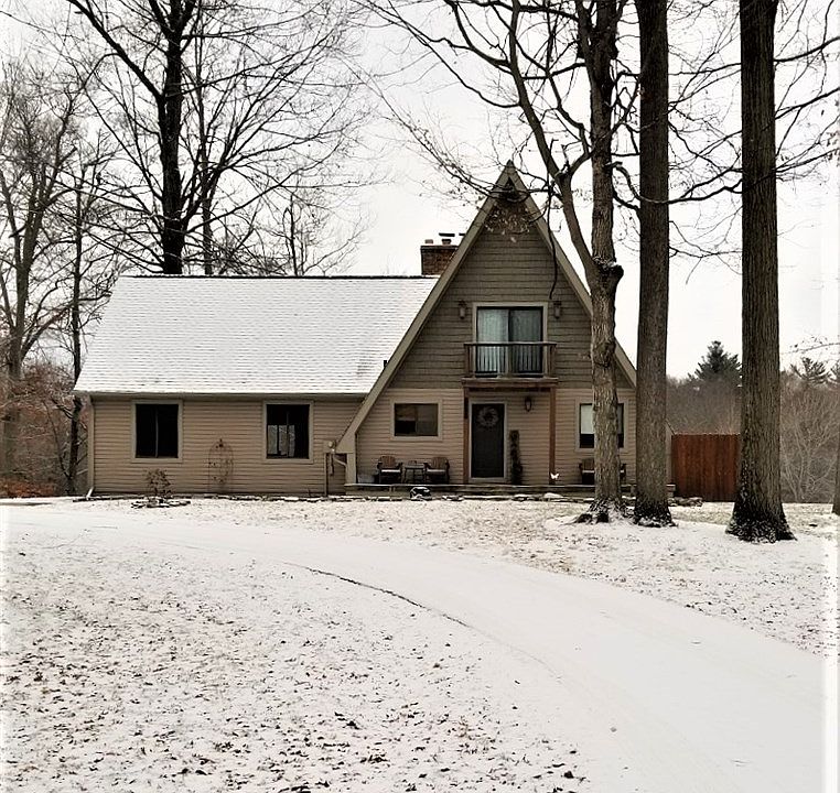 Have you ever just wanted to get away from it all? Here is your opportunity! This completely updated A-Frame is situated on 10 beautiful acres which are partially wooded, features a large pond with a beach area, pole barn and plenty of open space. Inside you will find a beautiful kitchen with granite and subway tiles, new hardwood floors on the first and second level. Beautiful views of the pond from the gorgeous living room and balcony. The master offers spacious room, large walk-in closet and a full updated bath with step in shower and natural light provided by new skylight. The lower level is a walk out. If features a bedroom, full updated bath, fireplace, great room and storage room. The home has new interior doors, fresh paint, a new furnace, wood burner, 2 natural fireplaces, new roof, new siding, and more. Enjoy the peace and quiet, wild life, and sit back and gaze at the stars. Welcome to your new home!