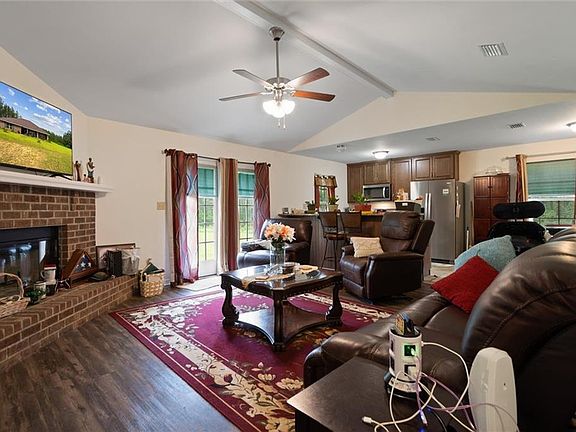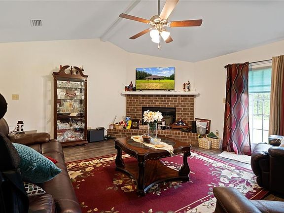 Peaceful living in the country! This beautiful, custom built home (2019) has all the bells and whistles, including LVP flooring throughout with ceramic tile in the kitchen and bathrooms. Kitchen features breakfast bar with granite countertops and stainless steel appliances. Split floor plan has two bedrooms with guest bath just off dining room, with spacious master suite on the other side of the home with extra large shower and double walk in closets. Den has beautiful brick hearth with wood burning fireplace. Double garage. Home sits on three lush acres, including a nice area with mature pines. ***Listing Agent makes no representation to accuracy of sq. ft. Buyer to verify. Any and all updates are per Seller(s).***