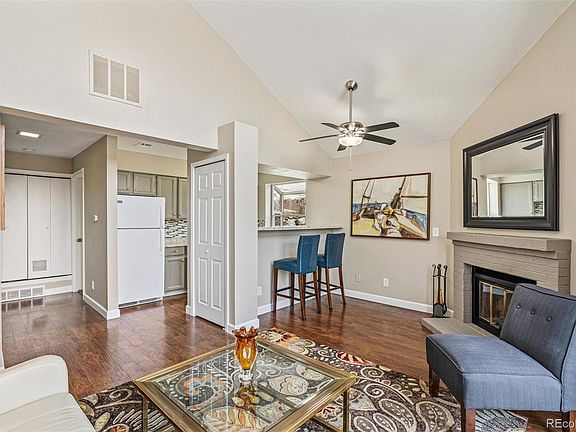 This stunning home is a must see! Gorgeous renovation through-out the entire home. Rare end-unit penthouse filled with natural light. Expansive great room w/ soaring vaulted ceilings extending up to 16 feet, floor-to-ceiling windows, open design to dining/kitchen. Renovated kitchen w/ custom glass tile backsplash, newer appliance package & large bay/box window w/ incredible mountain views. Relax at the breakfast bar or the beautiful fireplace. Step through sliding glass doors on to the private covered balcony - the perfect space for outdoor entertaining, plus secure private storage space. Large master bedroom, with vaulted ceiling, new high-end carpet & pad, new light fixtures, an immense walk-in closet and a new double pane window offering a tranquil view of mature pines. Renovated full bath w/ oversized custom hardwood vanity, white marble sink, framed mirror, glass tile backsplash, updated fixtures & oversized tub. Revel in the details, including new designer paint throughout (walls, ceilings, doors & trim), new light fixtures/fans, new hardware, new electrical outlets (upgraded GFIs in kitchen and bath), newer oversized baseboard, trim & doors and luxury wood-style plank floors. The perfect location, providing very quick access to the mountains and downtown Denver! Located in a quiet area of the highly desirable Green Mountain neighborhood, just a short walk from the Green Mountain recreation center and the unbelievable Green Mountain open space park, a 2,400+ acre paradise for outdoor enthusiasts providing miles and miles of biking/hiking/running trails - a neighborhood gem! Only minutes from three grocery stores and tons of neighborhood retail/restaurant amenities and just a short drive to an RTD light rail station. Your peaceful perfect home awaits!