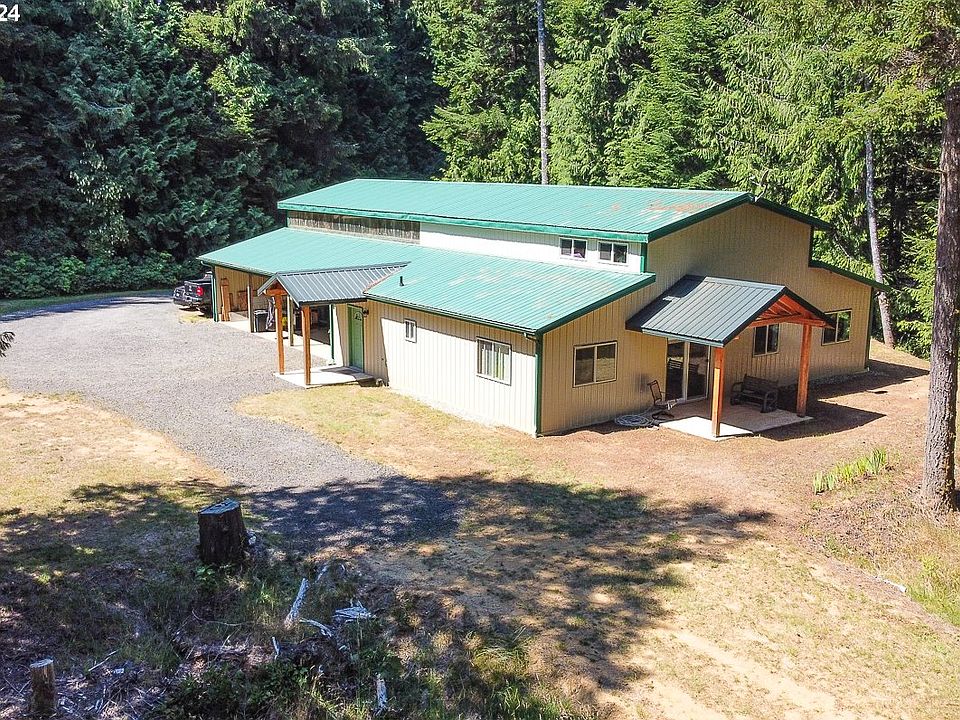 One-of-a-Kind with amazing living/shop set-up. Ideal Location convenient to Dunes, Hall Lake, Eel Lake & Winchester Bay. Building is 60x48 which includes approx. 1306 sqft 3/1 main level living plus 506 sqft loft with bathroom. HUGE approx. 1500 sqft unfinished shop area with 14' and 8' garage doors ideal for RV, Boat, ATV or ? Fantastic great room design with large kitchen island, quartz counters, stunning bathrooms with walk-in showers, plank tile and hardwood floors, huge, covered patio and dog run. The property also features gated entrance and walking trails through a park-like location.