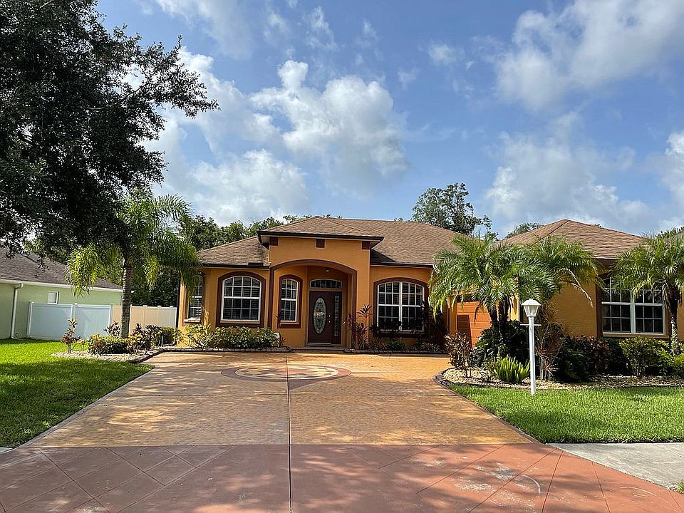 Peaceful, private view of a preserve from all living spaces of this beautiful 3 bedroom, den/office, 2 bath home. Very open floor plan and the primary bedroom has a beautiful shower, two sinks, a separate toilet area, and a large walk-in closest. The other two bedrooms are on the other side of the home and both have access to the second bath. Pretty and functional kitchen opens to the great room and has an eat-in area. Chelsea Oaks is a preferred gated community with a pool and playground. Great location that is close to shopping and convenient to the interstate. NO CDD taxes and low community fee of $403 per quarter. PLEASE NO REALTOR CALLS.