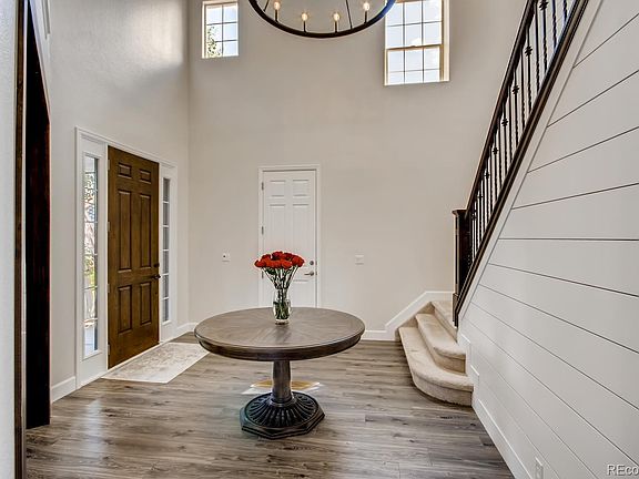 Perfect move in ready home! Completely remodeled on every floor with high end custom finishes! The styling of the home is Mountain Modern with the perfect blend of clean lines and warm wood. The heart of the home is built around the gourmet kitchen with a gas range, double ovens, large custom island, wood beams, wine bar, great room and a covered and uncovered patio. Beautiful Custom Knotty Alder wood throughout. The finished basement has 10' ceilings with a wall wine cellar and 8' glass doors, media area, wet bar with 2 TV's, a 12' walkout glass slider and an outdoor TV entertaining area. The master bath has a beautiful glassed 60 sqft dual shower with views of downtown Denver. Located in the very desirable are of Daniels Gate in Castle Pines. Close to everything, but just far enough away to breath clean air and enjoy Colorado living. Beautiful Mountain and City Views on open space. Shaded dog run and plenty of room for your kids to play. The yard is perfect size for active adults that do not want to spend there weekends mowing. Walk to Daniels Park and Daniels Park trail system, Daniels Gate pool, Daniels Gate play ground and park is just across the street and there is four amazing golf courses just a couple minutes drive away. When you visit drive 1/2 miles west and check out the incredible Daniels Park views.