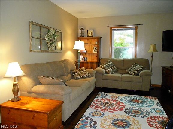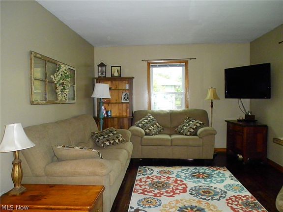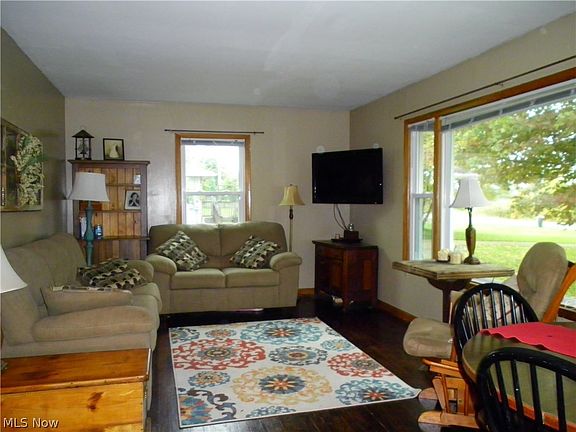 Ranch home in South Range School District. This home features a living room with hardwood floors, kitchen with all appliances , 2 bedrooms, bath., and laundry room. Natural gas for heating, central air, water softener. New windows throughout home in 2014. Side porch, back patio, fire pit in back yard. Two car detached garage with lots of storage. New electric service in garage. Electric dog fence. Nice country setting. Convenient location. Call to see this home.