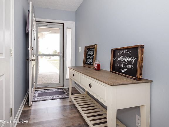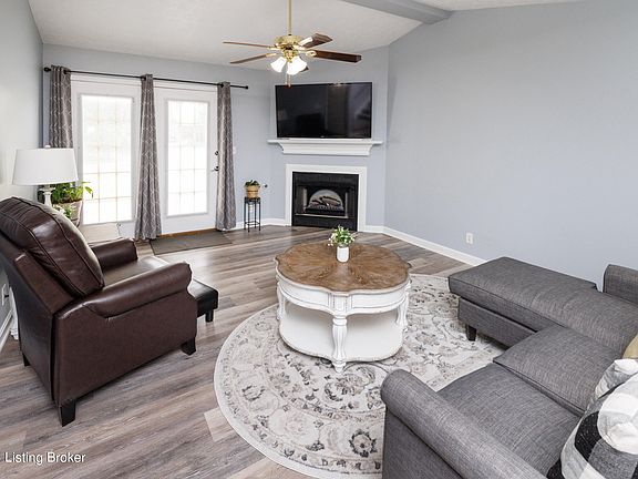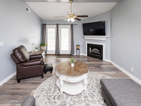 This inviting 1.5 story patio home in Spring Meadows, Bullitt County, features 3 bedrooms and 2 full bathrooms. The updated kitchen showcases elegant white cabinets and comes fully equipped with appliances, including a washer and dryer. Throughout the main living areas, you'll find stylish grey vinyl plank flooring under a vaulted ceiling, creating a spacious and modern atmosphere. A cozy fireplace adds warmth and charm. Located conveniently at the Brooks exit, the home includes a 1-car attached garage and patio area, offering both comfort and convenience in a desirable neighborhood.