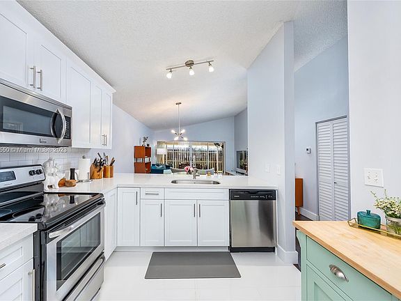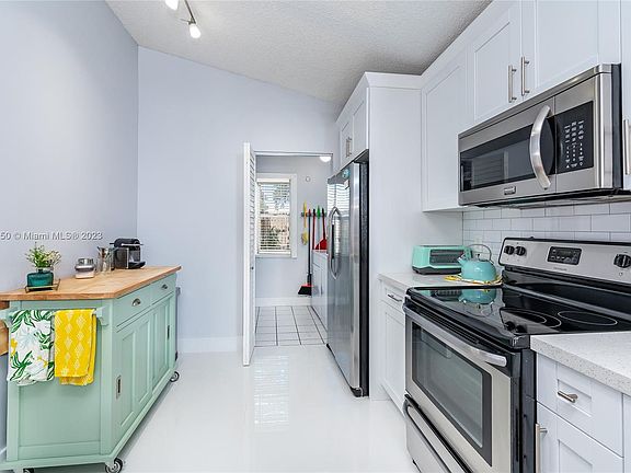 Welcome to this charming and stylish sought-after one-story townhome in the heart of Pembroke Pines. This true-of-its-kind home in the guard-gated community of Flamingo Villas features tastefully appointed laminate faux wood flooring, volume ceilings in the open-concept living area, and a beautifully updated kitchen with shaker-style wood cabinetry, quartz countertops, and stainless steel appliances. The primary bedroom features dual closets including a walk-in, and a classically updated bathroom. This lovely home also boasts an indoor laundry room/pantry combo and a storage closet within the expansive screened-in patio. Community amenities include a clubhouse, gym, pools, playground, tennis courts, roving patrol, and more. Located near hospital, parks, shopping, restaurants, and schools.