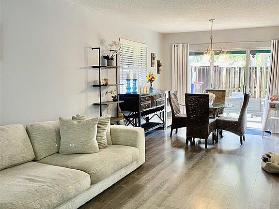 The well-maintained corner unit offers a newer updated kitchen with white wood cabinetry, quartz countertops, and a half bath downstairs. The convertible 3rd bedroom downstairs has a closet. 2 Primary suites upstairs have private bathrooms. Laminated flooring on the first floor and stairs. Neutral ceramic flooring in upstairs bedrooms. Accordion shutters. The open, paved back patio is fully fenced and has an attached storage room. Ready for BBQ and entertaining. The exterior of the home was just painted.