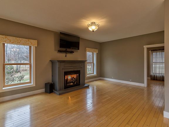 Welcome to this beautiful, unique property located in Lynnville, IN situated on 2.5 acres! This custom, well-built home has plenty of room with 4 bedrooms, and 3 and a half bathrooms, with more rooms to spare. The home offers lakeside views, and a detached, commercial sized garage that comes with a 2-bedroom apartment, complete with a full kitchen and laundry. Walking in the front door of the home, you are greeted by a formal foyer with gorgeous hardwood floors throughout the main level. The living room offers amazing views of the wooded area outdoors and features a gas fireplace, perfect for cozy nights at home. Off the living room is the perfect space for an office, including large windows that provide a ton of natural light. Open to the living room is the spacious kitchen, with plenty of room for entertaining guests. The kitchen offers solid surface countertops, stainless steel appliances, a large kitchen island, and a breakfast bar. The windows in the kitchen give a nearly panoramic view of the backyard, overlooking the open deck and lake. Walking through the French doors in the kitchen is the formal dining room, complete with custom China cabinets. Rounding out the main floor, you also have a beautiful sunroom to enjoy more views of your wooded yard and a small powder room for guests. Located upstairs are the four spacious bedrooms, each featuring carpeted floors and large closets. The primary bedroom boasts a custom, walk in wardrobe, a large, private en-suite with a twin sink vanity, stand up shower, and a private balcony with lakeside views. Rounding out the second floor is a large playroom and a jack and jill bathroom. The full basement is partially finished, with plenty of room for storage and a built-in theatre, with an additional full bathroom. There is a large, partially covered deck with access to the backyard and tiled patio. The home was built to withstand severe weather with insulated concrete on the basement and first floor, which also helps with heating and cooling costs. Don’t miss your chance to own this amazing property with so much room inside and out!