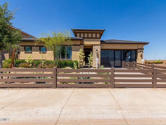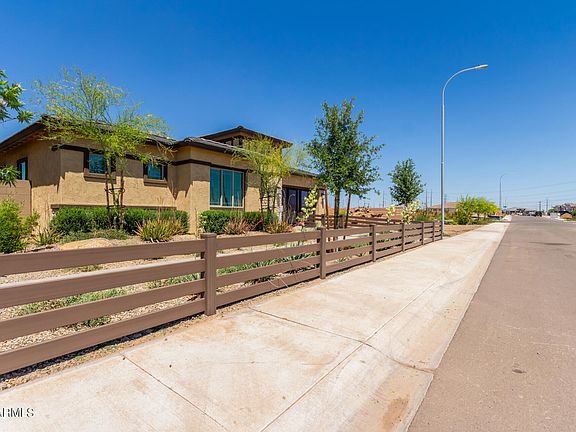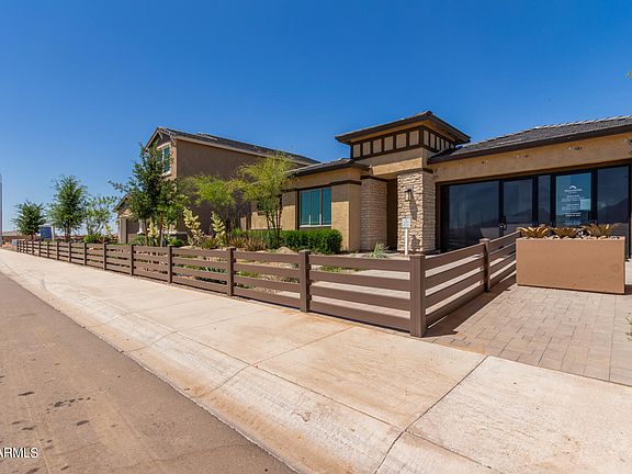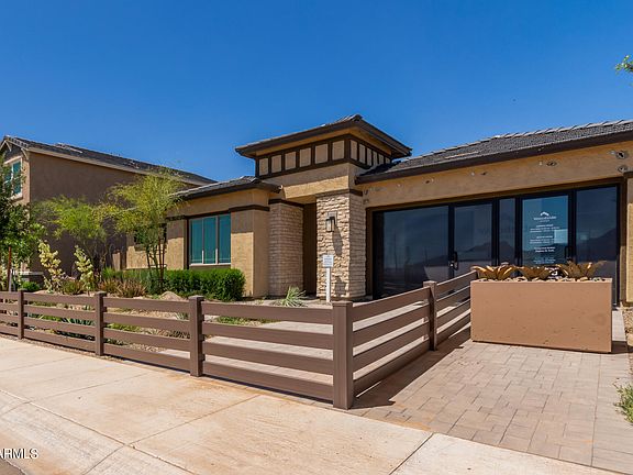 FORMER MODEL HOME in the master planned community of Alamar w/tons of DESIGNER UPGRADES throughout! FANTASTIC curb appeal w/paver driveway, stone columns + full landscaping! This energy efficient home features a GOURMET kitchen w/BEAUTIFUL white maple cabinets, stone countertops, herringbone tiled backsplash, GOURMET gas range + GE stainless appliance suite! PRIVATE primary bedroom w/ensuite bath w/extended shower + glass enclosure! Step outside to the fully landscaped back yard OASIS w/pergola, faux grass + built-in BBQ!! Hard flooring in main living areas, coffered ceilings in foyer/primary bedroom + so many more upgrades throughout! Located in Alamar w/LAKE, pool, splash pad, parks, pickleball, tennis, basketball and MORE! Views of Estrella Mountain Regional Park! WELCOME HOME!