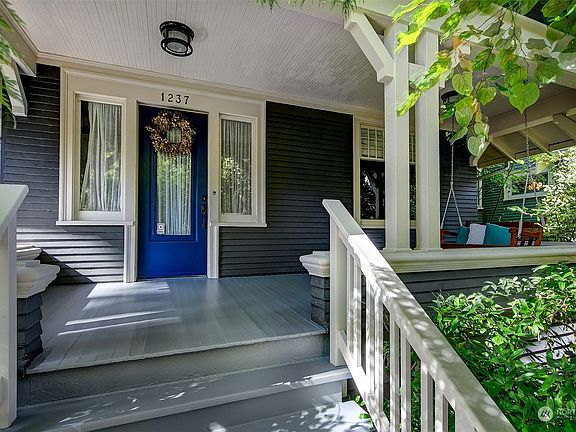 Grand 1907 North Capitol Hill Craftsman, thoughtfully updated for today’s living! On quiet, tree-lined street across from Stevens School. Lovely day rooms w/stunning hardwood floors. Formal living & dining rooms, amazing kitchen & family room overlooking private yard with mature trees. Upstairs features 4 spacious bedrooms w/fir floors, including lovely Primary Suite w/walk-in closet & en-suite ¾ bath w/walk-in shower. Lower rec room has Murphy Bed, ¾ bath & built-in desk for remote work/study. Freshly painted interior, refinished hardwoods & new carpet on lower. Enjoy private backyard or relax on front porch swing & read a book! Alley access w/parking pad & EV charger. Radiant heat, solar panels & mini-split in several rooms–it’s ALL here!