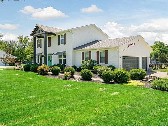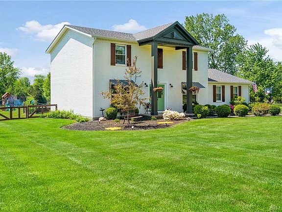 Country living with all the extras. This gorgeous, modern farmhouse is situated on 1.5 acres and sits in a secluded neighborhood in desirable Clearcreek Township, inside Springboro School district. A long, set back driveway takes you to an attached 3 car garage where the walkway leads you to the double entry doors. As you enter the spacious foyer, you're greeted with hardwood floors throughout and you'll find the kitchen completely remodeled with granite countertops, soft-close shaker cabinets, open shelving, and custom lighting. The dining room is adjacent to the kitchen providing the perfect layout to entertain. The very spacious family room sits off the kitchen and again, provides plenty of room to entertain or just relax when the day is done. The custom, modern farmhouse steel & wood stair railing leads you upstairs to the bedrooms. Downstairs you will find a completely finished basement with office/ possibly 4th bedroom and one rec room, adding an additional 800sq feet of living space. There is also an eco-friendly geothermal hvac system. The recently painted, all brick exterior has been completely updated and consists of new double entry doors, new rear french doors, and new windows with custom made awnings/shutters/window boxes enhanced by beautiful landscaping in the front & backyard. The rear french doors lead you to a large deck that overlooks the fenced in 16x32 in-ground swimming pool with a concrete patio and grass area surrounding it. Along with the pool area, the entire back-yard is fenced in with a custom wood fence. In the backyard you'll find a jungle gym, fire pit, and a large shed.