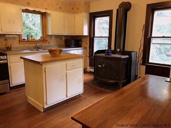 Early 1900's farmhouse with vintage charm on almost 5 acres Beautiful land, once used as a horse property, has large open fields, a small stream and a 1400 sq. ft barn. Old fashioned kitchen has new stainless steel appliances and opens to the separate dining room. Lovely living room with stone fireplace., warm wood floors throughout and original woodwork create an inviting home. Upstairs there are 4 bedrooms and bath. The second bath is on the first floor as well as the stackable washer dryer. House is tucked behind a privacy fence and has a sweet entry porch. Freshly painted with a new roof