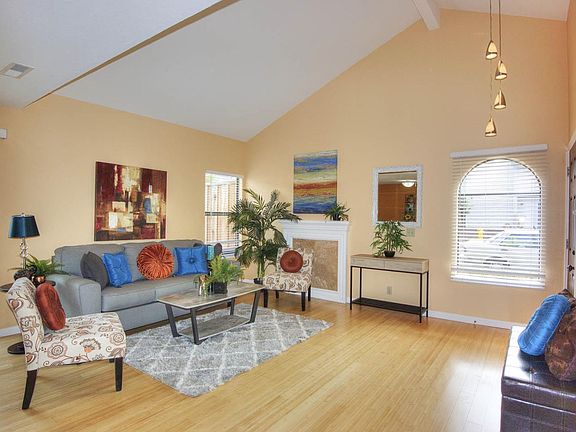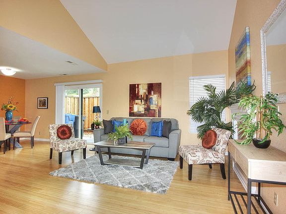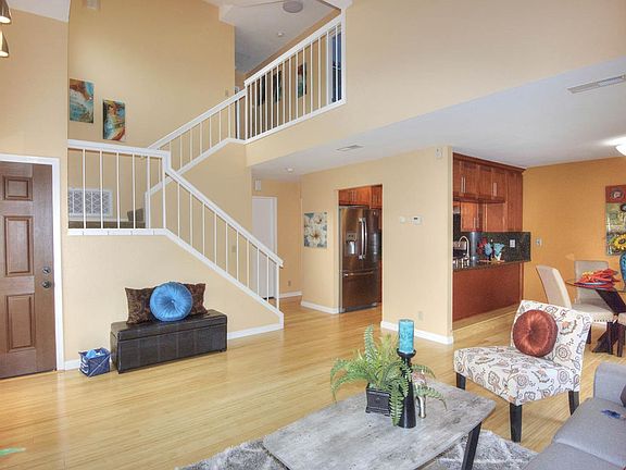 Two Story Townhouse with Modern Updates**Open Style Floor Plan with Vaulted Ceilings Provides the Home to Fill up with Natural Lighting*Newer Bamboo Hardwood Flooring on Ground Floor*Updated Kitchen with Granite Counter Tops with Full Backsplash, Designer Cabinets, Breakfast Bar, Stainless Steel Appliances & Recessed Lighting*Separate Dining Area Next to Newer Dual Pane Sliding Glass Door Leading to Back Patio*Updated Baths with Double & Single Sink Vanities, Newer Linoleum Flooring & Newer Toilets*Newer Plush Carpet & Pads on Second Floor*Newer Heating Furnace(2 YRS)*New Light Fixtures*Large Back Patio Low Maintenance*2 Car Garage Side by Side Parking*Washer/Dryer & Refrigerator Included*Low HOA Dues Full of Amenities*Walk Distance to Schools & Parks*Close to Shopping & Freeways*Must See!