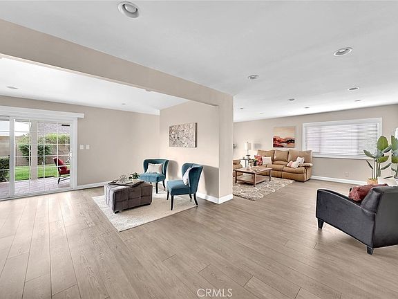 Welcome Home!!! This single story home has no interior steps and if fully remodeled. This beautiful home has new luxury vinyl flooring throughout and dual pane windows throughout. This home has been opened up from its original interior floor plan to create an open flowing feeling. The kitchen is remodeled with light wood cabinets, beautiful counter tops and stainless steel appliances. The family room features a stacked stone wall and cozy fireplace. The guest bathroom is remodeled with a new vanity with stone counter tops and the shower has a wonderful herringbone designed tile work. The oversized master bathroom has been expanded from original size and features dual vanities and a large walk in shower with professional tile work. The property also has paid solar panels, tankless water heater, upgraded electrical panel and an alumawood patio cover. The house is located on a cul da sac street and within the boundaries of award winning schools.