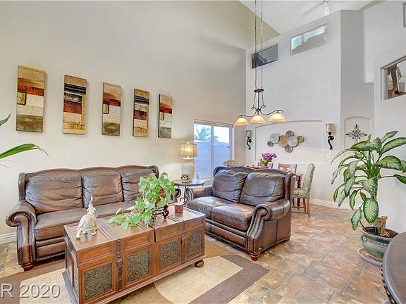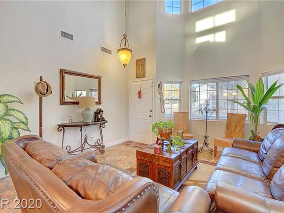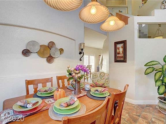 Location, location, location! This Seven Hills home in a gated community features $40 K in recent upgrades. 3 beds, 2.5 baths, Spanish tile throughout the 1st floor, wood laminate up the stairs & throughout the 2nd floor, both with raised baseboards adding the finishing touch. New dual flush toilets, smart thermostats, The kitchen has new stainless steel appliances, white cabinets w/pulls & granite countertops. Cozy family room with a lovely fireplace and ceiling fan; all bedrooms have fans. The Master suite includes a walk-in closet, an updated bathroom with Dbl sinks, a separate shower & a jacuzzi. The 2nd bath has a shower and a tub. Pool size backyard, breathtaking views of the Seven Hills trails, park, and stunning sunsets against the majestic mountains, mature desert landscaping, PLUS no neighbors behind. Freshly painted, upgraded windows with dual pane and high-performance SmartSun glass. Solar Panels and much more. This home won't last!
