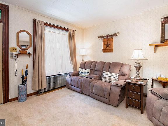 Do not miss your opportunity at this immaculately maintained 5 bedroom home! Enter through the front door off of the covered porch into the vast living room offering plush, freshly cleaned carpeting, crown molding, gorgeous leaded, stained glass window, and original ornate woodworking. Just off the living room is the spacious dining room complete with ceiling fan and saloon doors to the 28 handle eat-in kitchen. The kitchen offers a large island with bar stool seating for 4 and additional cabinetry, and stainless built-in appliances. Continue on to the 8x9 bonus room that could easily be turned into a mudroom, laundry room, or sun room. Exit door to the covered back wooden deck, fenced in backyard, and flower gardens with decorative brick surround, all making for a beautiful backyard retreat. Back inside you can make your way to the second floor to discover three spacious bedrooms. The first of the three is a walk through that could be used as a nursery or office and contains a large closet that was built-in by the current owners. Bedroom two offers frieze carpeting, bay windows, and a closet. The third bedroom is the largest of the three and offers carpeting and two large closets. The third floor contains two large bedrooms, both offering beautiful hardwood flooring, fresh neutral paint, large closets, and newly installed heating. The large unfinished basement is meticulously clean and offers washer, dryer, and washtub to remain for the new owners! You will also find an exit door to a unique, private, enclosed passageway that leads to steel bilco doors at the front and back of the property! 9ft ceilings throughout, solid wood doors and original door knobs, and detailed original woodworking are just a few of this home's incredible features! Call today for your private showing of this gem before you simply miss your opportunity!