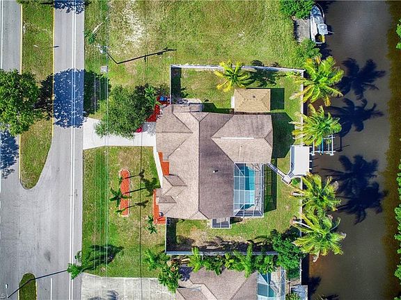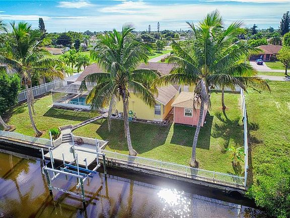 Home sweet home! And this one has everything you are looking for, including easy access to the river. Four bedrooms (split plan) and two full bathrooms. A nicely sized pool, and plenty of room to entertain around it! Living and family room, and DON'T MISS the kitchen! It's perfect place to cook up your big family meals! Double oven, double fridge and lots of cabinets and counter space! Outback you have canal direct access out to the water. Boat lift in place for up to 22 foot or 10,000 pounds. There's a great shed to the side of the home that could be a great man cave, she shed or storage. Garage has plenty space as well! There's an additional storage area above garage as well. This large lot is a great location for easy access to Cape Coral and Ft. Myers. Come check it out before another family scoops it up.
