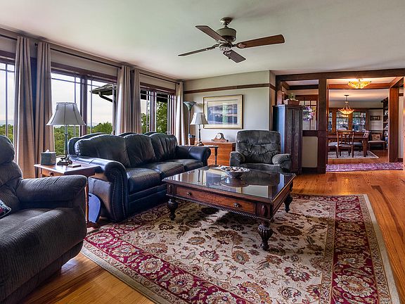 Stunning expansive views, private setting, 14.24 acres. Spacious living room with gas fireplace, dining room, large eat-in kitchen, den, 3 bedrooms, 3 baths, custom walnut trim through-out the home. Screened porch with fireplace, walkout basement, oversized double car detached garage with storage above, 16 x 40 in-ground pool, barn, turn-out shed, mature landscaping.