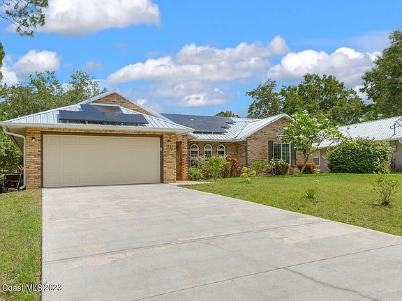 Remodeled 3 Bedroom 2.5 Bath Home in NW Palm Bay! Newer Metal Roof & New Impact Windows Keep Your Insurance Bill Low ~ Only $2049 Per Year! Brand New Solar Panels, New Top Of The Line Attic Insulation & New H20 Heater Will Keep Your Power Bills Low ~ Most Recent FPL Power Utility Bill was Only $112 ~ WOW!. Updated Kitchen Features 42'' Cabinets, Granite Counters, SS Appliances, Tumbled Tile Backsplash & Vaulted Ceilings. Relax On Your Spacious Lanai Overlooking Your Private Fenced Back Yard With A Gorgeous Oak Tree. Additional Upgrades Include: Leaf Filter, Reverse Osmosis (City Water Too), & A New Garbage Disposal . Super Central Location Close To St. Johns Heritage Parkway, Emerson, Pace and Malabar.