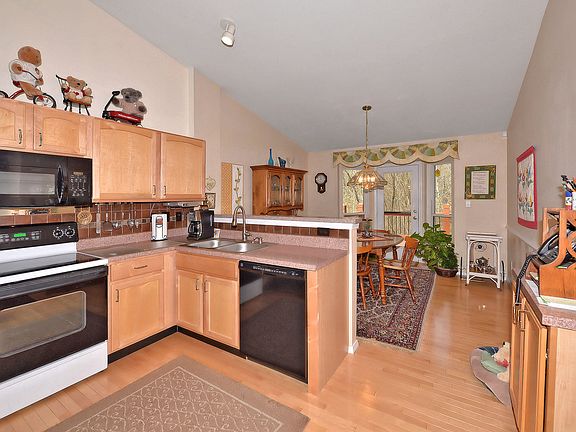 West County Walk-out Ranch/Villa with 3 bedrooms, 3 full baths and 2-car garage. Main level features open floor plan with Carpeted Living Room with vaulted ceiling, ceiling fan and arched window; Kitchen with hardwood flooring, raised panel cabinets, breakfast room with bay access to large deck overlooking lawn backing to wooded common ground, main floor laundry, main floor master bedroom suite with bay window, vaulted ceiling, ceiling fan and full bath with double vanity and large glass shower, 2nd bedroom and full bath with Jacuzzi tub in hall; Open staircase leads to lower level with 3rd bedroom with walk-in closet, Jack and Jill Bath, storage area, and family room with ceiling fan and walk-out to yard. Additional amenities include drywalled 2-car garage and sprinkler system. All of this in the Rockwood School District and close to Restaurants, Shopping, Parks and Historic downtown Eureka.