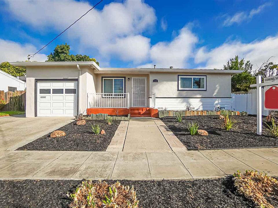 Cute Schafer Park home is perfect for a first time buyer or commuter! Walk into a spacious living room, dining area, master bedroom with mirrored closet doors and added half bathroom, full guest bathroom with a stall shower and two additional bedrooms. Kitchen with oak cabinets and tile countertops opens to the added family room. Additional bonus/office/rumpus room opens up to a deck and spacious back yard with fruit trees. Dual pane windows and near rear fence. Freshly manicured low maintenance front yard. Conveniently located close to HWY 880/92, schools, shopping, Cal State East Bay, B.A.R.T. and all conveniences. Home is clean and ready for buyer to move in and make their own!