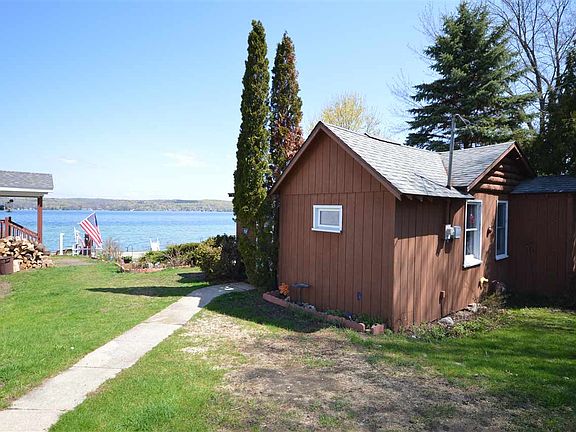 The possibilities are almost endless for this unique property! You get not only a 5 bedroom home but an individual 1 bedroom cottage right along side it! The current owner has used the back of the main home as a lock off unit for seasonal rent, as well as the cottage, all while not being bothered in the comfort of the main home. But wait, there's more! You get your personally stocked trout pond that is fed by the artesian well, over an acre of grounds for recreating, including the outdoor movie screen installed on the home, and then of course beautiful Lake Charlevoix and your own private waterfront, and just in time for Summer! The large pole building will store a lot of toys and hobbies, with full electric and heat. Lots of nice mature landscaping with lots of perennial flowers surrounding the grounds. This is a great package, and would be a great investment with all the rental capabilities.