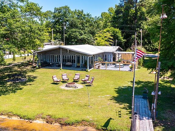 Immaculate Lake Marion waterfront home on a deeded lot with over 136 linear feet of waterfront & private dock. Located in the popular White Oak area, this wonderful home was renovated in 2013 & features: excellent water views; cypress & brick exterior; metal roof; plantation shutters throughout; vaulted ceilings; Living rm./ panoramic lake views & exposed brick; open kitchen w/ exposed beams & stainless steel appliances; oversized owner's bedroom; large bath rm. w/ walk-in tile shower & tile floor; covered porch; 2 patios(1covered); dock w/ covered pier head & electricity; landscaped yard w/ a large area fenced & more! A mini split HVAC unit was put in 2018(there is one HVAC unit in the owner's bedroom that heats & cools the entire house- more could be added). Roof replaced in 2013.