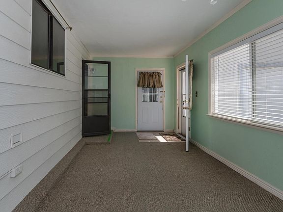 CASH only......Well maintained 3 bedroom 2 bath home. Inside you will be welcomed by a large fully enclosed sun room, living room, eat in kitchen with a built in buffet, large walk in pantry and tons of storage. There is a master bedroom with a vanity, an attached large master bath with shower, 2 other bedrooms and an additional full bathroom. Insulated steel siding, newer hot water heater, newer furnace, updated electrical breaker panel. Concrete pad under entire home. Over sized 2 car garage with large storage rooms that can be removed to make it a 4 car garage easily, garage has 220 amp, electricity and a garage door opener. Storage shed has electricity in it as well. Yard is fully fenced and has alley access to allow for RV, camper or trailer parking.