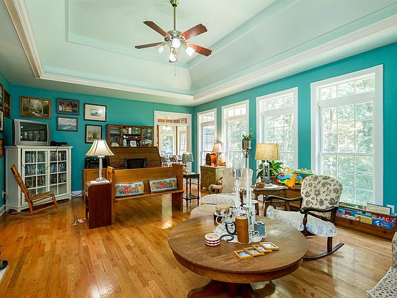 RARE FIND-Beautiful home with lots of windows overlooking trees in back. Two car attached garage plus two car detached garage. Full apartment over garage. In-ground, salt water pool. Hardwood throughout the home. Tile floors in kitchen and bathrooms. Workshop under home.