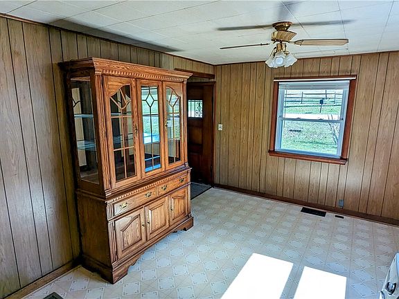This is that farmhouse in the country that you may have always dreamed of! Clean, sturdy and in nice shape, this 3 bedroom, 1 bath home is move in ready and has an extra clean and dry workshop space in the basement with windows and an outside walk out entrance! Located just up the hill from two major golf courses and just minutes from shopping, dining and other attractions in Ellwood City and Beaver County. Storge shed in the yard, beautiful dining room hutch and stand alone bedroom closet are included!