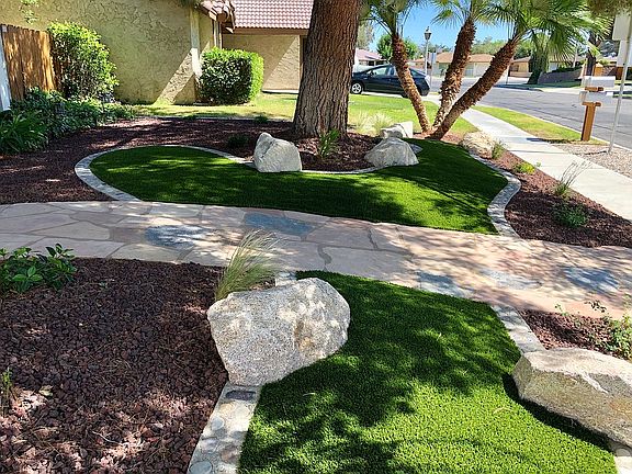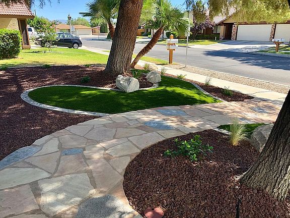 Located in sought after Heritage Village Private Community, this spacious home welcomes you with a gorgeous xeriscaped front yard that includes a flagstone path, lava rock, artificial turf and landscape lighting. Upon arriving, you will notice the front porch is Italian tile. You will also see the new entrance door and as you go in the house, you will encounter the beautiful vaulted ceiling. There is a fireplace in the Living Room with fixtures included, a new modern ceiling fan with different light settings and remote control, and a custom ordered french door with a doggy door for your fur babies. This leads to a spacious covered Patio, also with newly installed tile. The Dining area features a beautiful accent wall and a modern chandelier that lights up the whole room. There is tile flooring throughout, beautiful laminated wood floor in the hallway and carpeting in bedrooms. The Master Bedroom also has 2 accent walls and sliding door access to the patio. The Kitchen features granite counter tops, stainless steel range, dishwasher, microwave and a french door refrigerator. The Family Room off kitchen features double glass French doors to a side patio area and an additional electric fireplace. It also includes a Laundry Room with washer and dryer. Both baths have new dark finished vanities and tiled surround on tubs, as well as tiled flooring. The two Patio areas are perfect for entertaining; there is a new beautiful Pergola in the back yard (2020) that features a round gas fireplace and Hampton Bay furniture included. The three car Garage has been recently painted and it has closet style shelves and doors, as well as decorative fixtures. This beautiful home includes both, AC and a brand new evaporative cooler. It has an alarm system ready to activate as well as security cameras for the driveway and front yard. This centrally located Heritage home is also walking distance to Starbucks and restaurants, as well as the local hospital. It’s also 5 minutes away from NAS China Lake Naval Base. You will love the beautiful community park, the pool, the clubhouse with a party room as well as the tennis and basketball courts. Certainly a beautiful oasis in the middle of the Mojave!