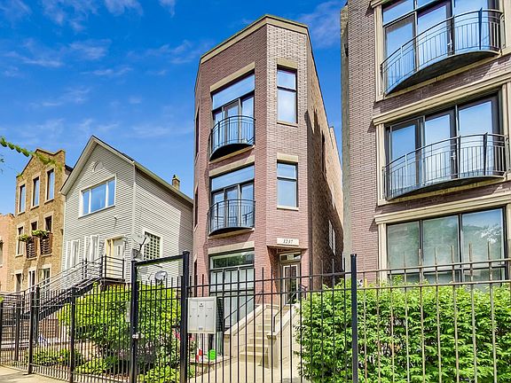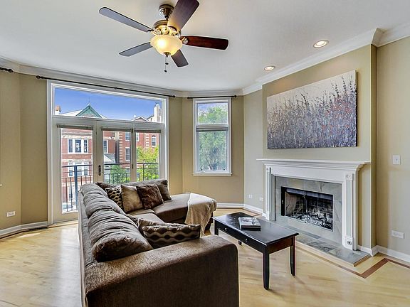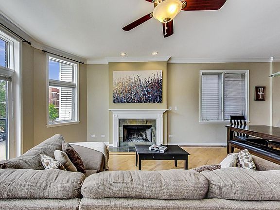 Fabulous 2 bed/2 bath condo with garage parking in awesome Wicker Park/Noble Square location! Steps to the 606 Trail, restaurants and bars on Division, the Blue Line EL train, Pulaski Park and easy access to the highway. Bright and open floor plan with nearly floor to ceiling windows. Gas burning fireplace. Chef's kitchen with granite counter tops and 42 inch cabinets. Several walk in closets. Generous room sizes. Ensuite primary with walk-in shower and separate tub. Enjoy multiple outdoor spaces - a private back deck, a Juliet balcony in the living room, and small common green space in the backyard. Garage parking and storage locker included!