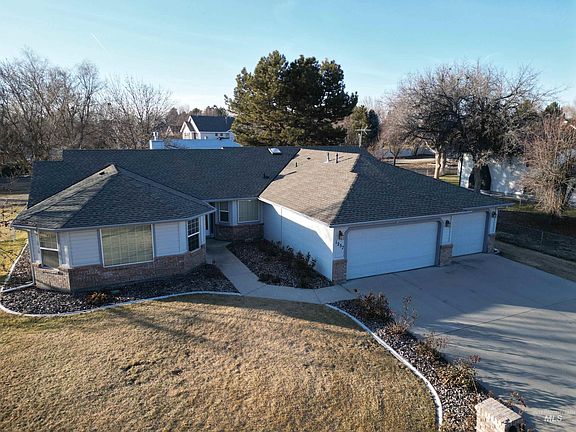 This is a solid, well-built home that sits on a half-acre lot close to downtown Eagle. Throughout the home the rooms are large and spacious. This is a 3 bedrooms 2 bath house plus an office. Huge open living room great for entertaining plus another great room with a fireplace. The primary bath is expansive. It has 2 walk in closets, double vanities, large tub and walk in shower. The covered patio leads to the large yard next to the house. There's room to add a RV drive or a shop. The triple car garage is complete with cabinets that extends the full width of the garage. The possibilities are endless with this property. Ready to move in or update the inside to add your own personal touch. The lot has the possibility of being split. Eagle City regulations will take precedence, and Eagle will have the final authority of the ability to divide the property.