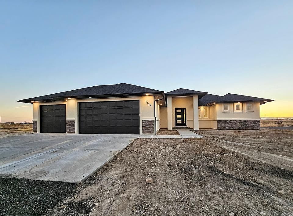 This very beautiful single-story 3 bed 2 bath home, a timeless masterpiece with soaring 8' vaulted ceilings. Truly unique modern sophistication & contemporary living on 1.2 acre with 3 car attached garage. Also included are a 75- and 65-inch T. V. with an alarm system. Kitchen includes recessed lighting, granite counter tops, island with ambient lighting, tile flooring and pantry. Master bath includes two separate sinks and walk-in closet. Covered back porch will allow you to enjoy your outdoor time in comfort and just minutes from beautiful lake Pueblo. Can't beat being the first person to live in the home! (Photos are of another home with this floor plan, previously completed)