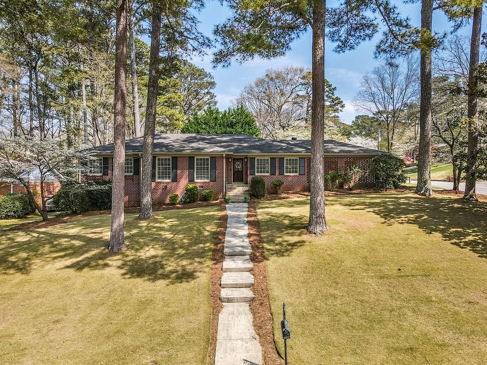 Beautiful traditional brick ranch, sited on a lush, elevated lot in fantastic Leafmore Hills. Large entry foyer flanked by spacious living & dining rooms. Pretty hardwood floors and trim details. Large, oversized windows flood home with natural light! Pretty kitchen with custom white cabinetry & quartz countertops, custom tile floor, stainless steel appliances including double oven stove, French door refrigerator, and dishwasher. Central island with storage and seating. Breakfast area too! The kitchen overlooks a cozy den area with access to outdoor patio entertaining areas. Light-filled "all season" cathedral ceiling sunroom offers cozy brick fireplace and brick floor. Fantastic living/entertaining space with lovely views and access to backyard. Owners' bedroom offers large walk-in closet, en-suite bath with custom tiled "rain" shower, double vanities, custom fixtures and hardware. Two additional bedrooms with closet space and a full bath. Full size laundry/storage closet in hallway. Downstairs provides room for additional 4th bedroom or space for a playroom/office. There is a full shower bath with custom tile and fixtures and additional storage areas provided. Generous landscaped corner lot with nice, gentle elevations from the street. Level double driveway area with ample room for guest parking. Spacious, level backyard is fenced and private with areas for gardening and play! Mature landscaped grounds, heirloom fig tree, and a storage shed, too! Great location in desirable Leafmore Hills at the "quiet end" of Oak Grove Drive. Swimming and tennis anyone? The Leafmore Club with clubhouse, heated swimming pool, swim teams, and a playground are available for membership! Perfect location close to neighborhood restaurants and pubs. Minutes to Toco Hills Shopping Center, Emory University, CDC, Children's Healthcare, top rated Oak Grove School! The neighborhood offers walking trails and great access to Atlanta's best recreation areas.