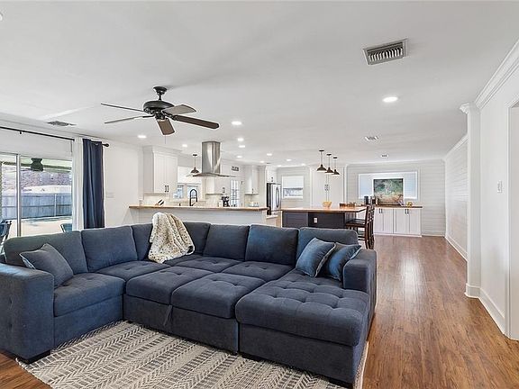 This charming brick ranch is nestled in the heart of Metairie on a spacious 75 x 120 lot. With five bedrooms, three full baths, and a half bath, this home offers plenty of room for comfortable living. The open-concept layout features a large dining room that flows seamlessly into the den and a beautifully renovated kitchen, complete with an oversized center island for entertaining, farm sink and stone countertops. The primary suite boasts a luxurious bath with stylish barn doors leading to a walk-in closet. Two additional bedrooms and a full bath are located on the first floor, while the second floor offers two more bedrooms and another full bath—for guests or a home office.