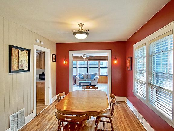 We have received multiple offers on this property and have scheduled a Highest and Best Offer Presentation for, Sunday, June 18th, 2023 at 5:00 pm CST. This charming home is located on a corner lot with mature shade trees. The Main Level features a Living Room, Formal Dining Room, a large Three Season Porch, Kitchen and a spacious front entry closet. The Upper Level has 2 Bedrooms and both of them have large Storage Closets. Next to the Full Bath is another Storage space. The first Bedroom also has a Built-In Cabinet and Drawers. There are beautiful Oak Hardwood Floors throughout most of the Main and Upper Level . There is a detached one car garage behind the home. The current owner updated the home to have Vinyl Siding and Leaf Guard Gutters.
