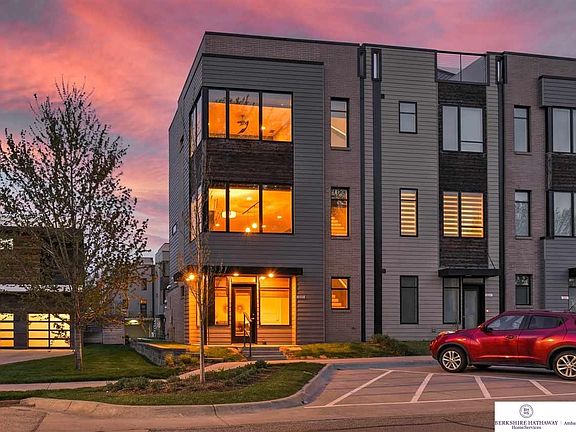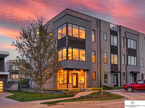 Sunday, May 23 Open House 1-3PM. Views Views Views!!! Come experience maintenance free life in this convenient and unique urban rowhouse neighborhood all its own. Just steps away from the Old Market and all the hustle and bustle of downtown, local restaurants and watering holes. This 2 bedroom 3 bath 2 car garage Townhome is stacked with every available upgrade including hard wood floors on every level! The open concept second level includes a beautiful full kitchen with Quartz countertops and SS appliances, living room & dining area with massive windows and balcony complete with gas hook up for grilling. The third level contains two large bedrooms each with private bath and walk in closets and laundry. Last, venture to the top level and enjoy the breathtaking panoramic views from your rooftop deck of the Omaha skyline. Don't miss your opportunity to see this beautiful and unique home before its gone!