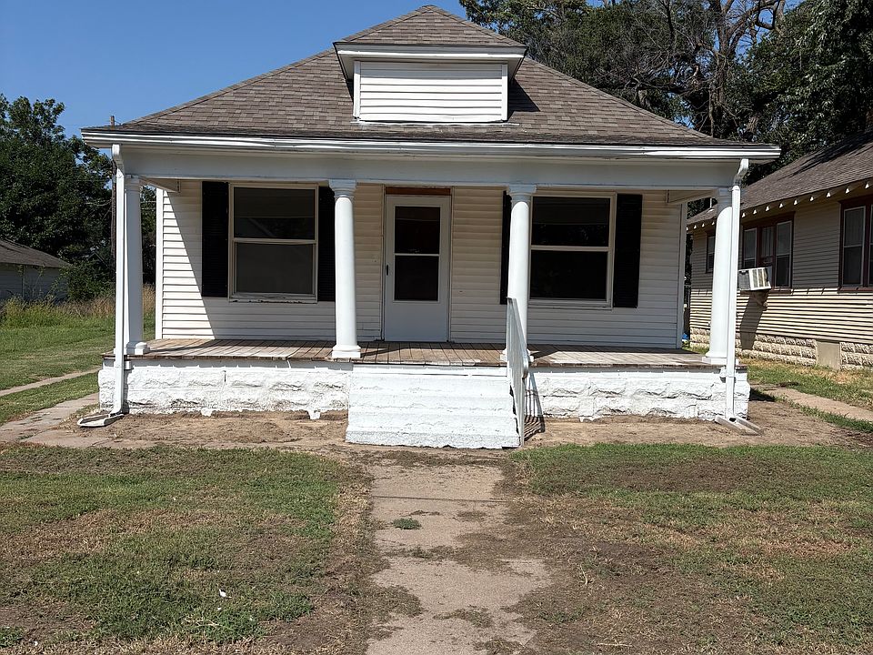 **SCAM ALERT: SCAMMERS HAVE USED OUR HOME TO STEAL MONEY FROM APPLICANTS. I WILL NOT REQUIRE YOU TO SEND ME MONEY ELECTRONICALLY AND YOUR APPLICATION FEE IS PAID ONLINE THROUGH ZILLOW. TEXT ME THROUGH ZILLOW OR CALL THE NUMBER ON THIS POSTING.** LOTS OF ROOM and located only a mile from Kellogg and minutes away from the Wichita Public Library, Exploration Place, Delano, Equity Bank/Wind Surge BaseBall Park, Intrust Bank Arena...super close to all the excitement!! This 1,036sq ft, 2-bed, 1-bath home has hardwood floors and brand-new luxury vinyl flooring, brand new ceiling fans in all rooms and has open concept dining and living room. New blinds and ceiling fans throughout. Newly remodeled kitchen comes with refrigerator, stove/oven, range hood, under-counter space for portable DW, new flooring, countertops, cabinets, and lighting. Large bathroom is newly remodeled with shower/tub, WD hookups, countertop to fold clothes, cabinets for extra storage, and new flooring and lighting. Backyard has nice area for relaxing and playing. 20x20 garage is in the rear of the backyard and provides extra storage for bicycles, mower and a place to pull your vehicle in to protect from Kansas hail. Have a trailer or boat? Alley access allows for exit or entrance and plenty of parking on the long driveway by the garage. Water Street is a dead-end with large culdesac which greatly limits the amount of traffic. East-facing front porch provides relief from the hot westerly sun. Property has on & off-street parking adequate for multiple vehicles. Minimum 1-year lease. Tenant is responsible for utilities, trash, mowing, snow removal. Small dogs under 20lbs (NOT 40lbs as pre-set by Zillow) allowed with additional $25/mo rent and other restrictions. No smoking/vaping. We do not participate in Section 8 An application is required for anyone 18 or over who will be living in the home. A federal ID or state DL, YTD 2025 proof of income and 2024 W-2 must be uploaded with Application. Apply and pay application fee via Zillow.