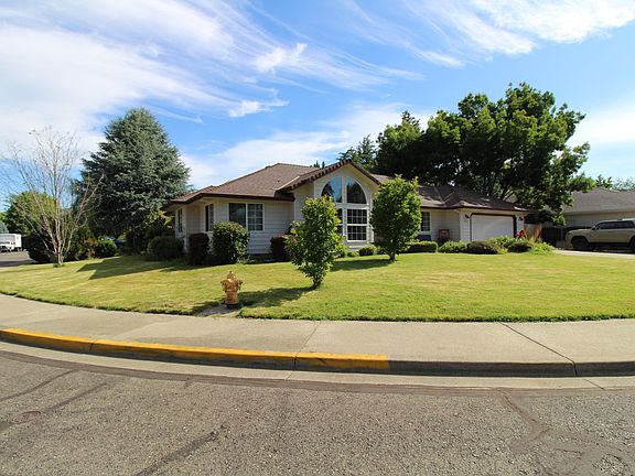 This well loved 3 bed, 2 bath home sits on a large .23ac corner lot in the highly desirable and pristine Rogue Willow Estates neighborhood. Approx.1724sf & boasting pride and ownership throughout! It features stately floor to ceiling windows and skylights/sun tunnels that let in an abundance of natural light and show off stunning views. The beautiful kitchen has granite countertops, a large island, stainless steel-appliances and a slider to the backyard from the dining area. Not to mention; arched entry ways, vaulted ceilings, & living room surround sound. Home sits directly across from the private and well kept Rogue River access for your enjoyment! The master suite features a large bathroom w/ double sink vanity, and a walk in closet. Plenty of built in storage in the laundry room, a large finished two car garage, and a private & fully fenced backyard with raised garden beds and fruit trees. Located seconds from the Rogue River, the Reinhardt park & close to downtown!