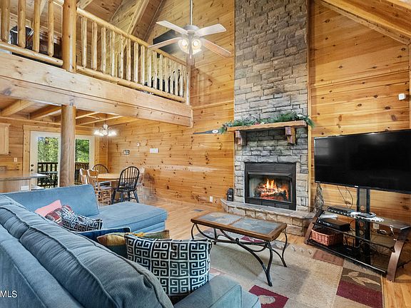 GROSS RENTAL INCOME OF $86,371 in 2022 and $98,610 in 2021. 2,621 sq.ft cabin comfortably sleeps 10 guests and offers AMPLE SPACE FOR IN CABIN ENTERTAINMENT. Amazing layout with endless potential - 2 master suites with soaking tubs, spacious living room/kitchen area for a large gathering, open loft area for additional sleeping and entertainment, over 1000 sq.ft downstairs with space for home theater, games, cozy fireplace and queen size bed. Great location - 10 MIN TO DOWNTOWN PIGEON FORGE. Ample level, off street parking. You will love the lofty cathedral ceilings and majestic 2 story fireplace that greets you when you walk into the cabin. The living room adjoins to the kitchen. The master on the main has a bubbling jetted tub. Upstairs you will find a second master suite with a bubbling tub plus an open loft area with additional sleeping and tv viewing space. Air hockey, pool table, several sitting areas, huge cozy couch for a home movie theater - all you need for fun night at the cabin. Bubbling hot tub on the covered back deck - perfect place to soak in the Great Smoky Mountains. Cabin sits on 1.41 acres in a wooded setting.