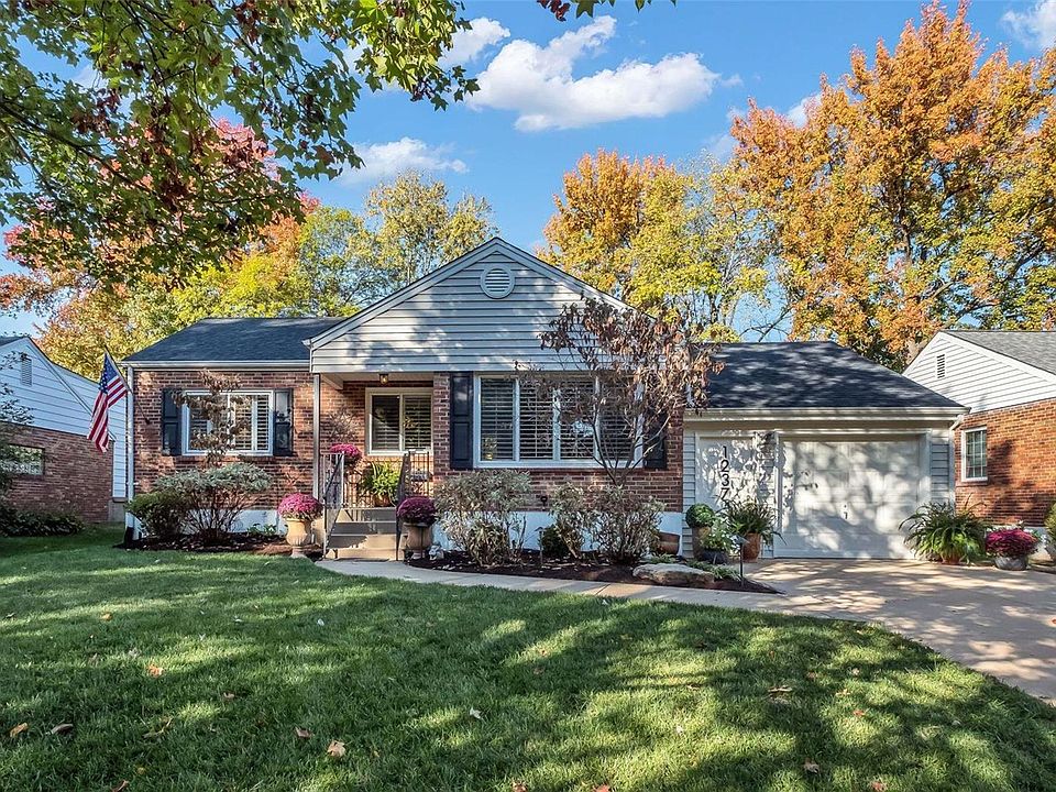 Webster Groves Brick Beauty checks every box for the most particular buyers. Every detail has been lovingly curated throughout the years. Every system has been replaced and upgraded. The stunning landscaped yard welcomes you into the light filled home with gleaming hardwood floors throughout. Custom plantation shutters have been added on all the newer, insulated window. The kitchen was opened to the large living room and renovated with quartz countertops, tile backsplash and new stainless appliances. The custom built island can stay. There is a light filled separate dining room that opens to the lush,private backyard. Enjoy the patio and privacy with an array of feathered friends joining. There are 2 light filled bedrooms and a stunning bathroom to round out your main floor. The basement provides extra living space with epoxied concrete floors and another gorgeous full bathroom. Plenty of storage through the French doors and in the cedar closet. This is your chance to unpack and enjoy!