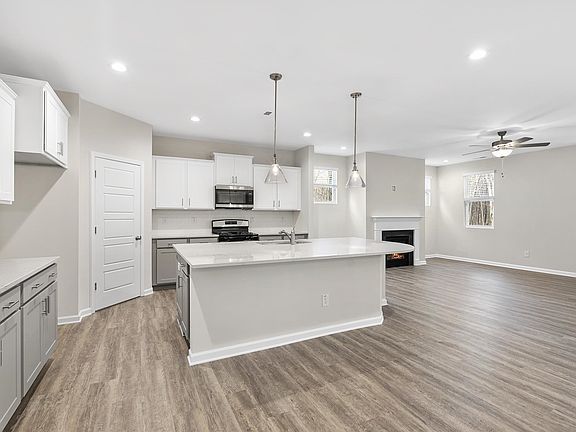 Custom built by Herring Homes! Final opportunity! Backs to beautiful wooded area! 1st Floor Owner's & Guest Suite! Luxury HWD Style Flooring Thru Main Living! Kitchen: Quartz Countertops, Custom White & Gray Cabinets, 3x6 Tile Backsplash, Custom Painted Center Island w/Breakfast Bar & Single Bowl SS Sink, Accent Pendant Lights, Recessed Lights, SS Appliances, Walk in Pantry! Open to Spacious Dining Area w/ Chandelier! Master: Trey Ceiling, LVP Flooring & Large Walk in Closet, Ceiling Fan w/ Light! MasterBath: Tile Flooring, Walk in Shower w/Glass Enclosure &Transom, Custom Cabinets, Separate Vanities w/Cultured Marble Countertops, Linen Closet! FamRoom: w/36" Gas Fireplace and Ceiling Fan w/ Light! Huge 2nd Floor bonus! MudBench w/Built in Cubbies! Covered Porch!