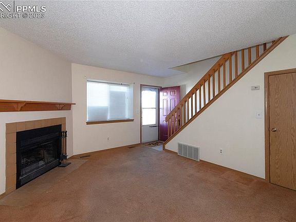 What a great opportunity! This townhome offers everything your first time buyer or downsizer wants. The Eaglecrest community is well located between the Powers corridor, Highway 24, and Peterson Road offering great access to all parts of Colorado Springs. Designated parking at the front door and a greater than average number of additional guest parking within easy access to the home. Main level offers a galley kitchen with dining area and access to the enclosed private patio. The living room accommodates ample furniture and features a wood burning fireplace. The first-floor powder room is a plus. Second floor includes a laundry closet (appliances included), 2 good sized bedrooms, and a spacious hall bath.