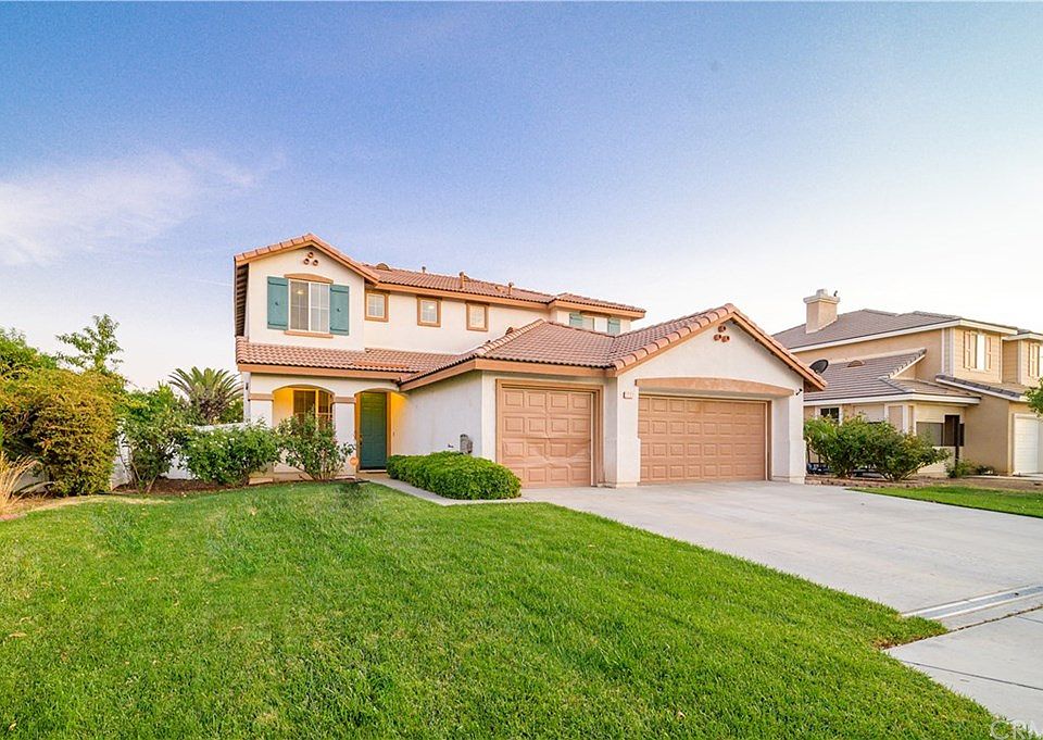 TURN-KEY 5 BEDROOM 3 FULL BATH IN A GREAT NEIGHBORHOOD IN PERRIS. THIS NEARLY 2,700 SQFT LARGE HOME IS SURE TO IMPRESS WITH TALL CEILINGS, FORMAL LIVING, DINING AND OPEN LIVING SPACE TO THE KITCHEN AND FAMILY ROOM. SOME UPGRADES INCLUDE UPDATED FLOORING, UPDATED STAIRWELL, PLANTATION SHUTTERS, AND WILL INCLUDE PAID OFF SOLAR!!! BOTTOM FLOOR ALSO INCLUDES SPACIOUS BEDROOM AND FULL BATH. KITCHEN BOASTS TONS OF CABINET AND COUNTER SPACE WITH GRANITE COUNTERTOPS, ISLAND AND A KITCHEN STUDY AREA. ASCENDING THE STAIRS YOU HAVE 4 OTHER GREAT SIZED BEDROOMS, FULL BATHROOM AND SPACIOUS LAUNDRY-ROOM. LARGE MASTER SUITE INCLUDES LARGE WALK-IN CLOSET, SEPARATE TUB AND SHOWER, AND GORGEOUS DOUBLE SINKS AREA WITH VANITY AREA. WELL MANICURED BACKYARD IS SPACIOUS AND INCLUDES COVERED PATIO PERFECT FOR GATHERINGS! HOME IS ABOUT 2 MILES AWAY FROM THE 215 FREEWAY, SHOPPING CENTERS, AND SCHOOLS! ACT NOW THIS HOUSE WILL NOT LAST!!!